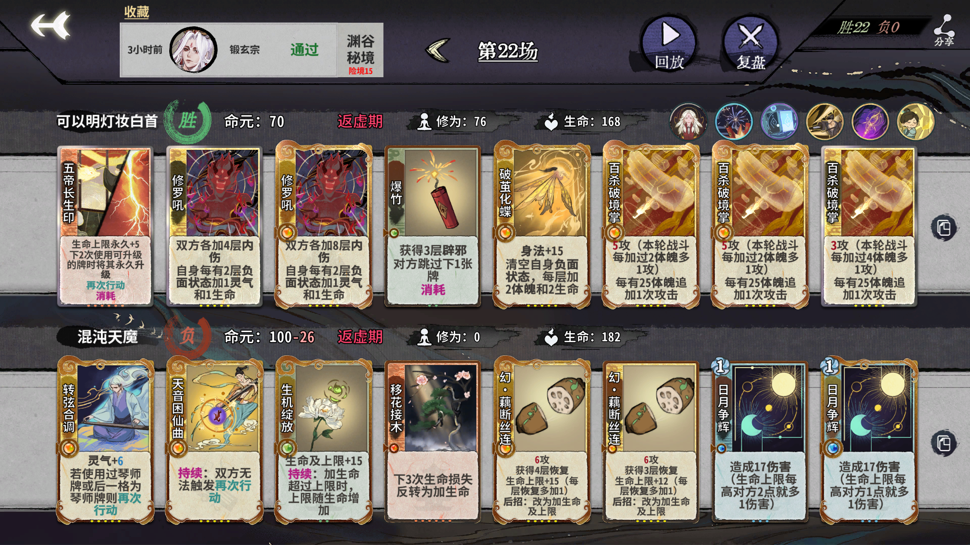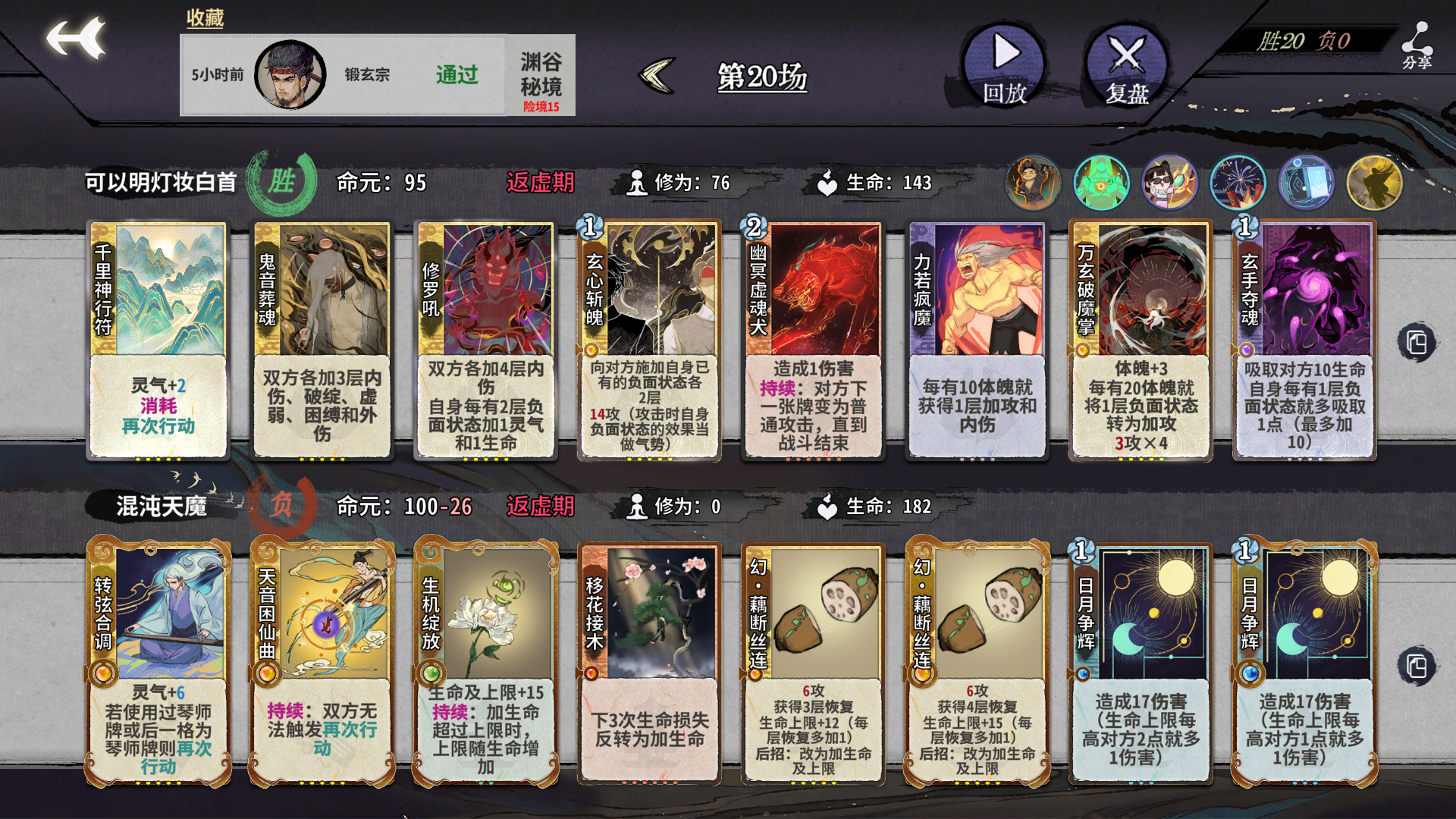 复刻:神中神,只要活到最后就能赢,复制对面两张超模机缘还能输?中期打老头也可以复制一张定魂玩玩。一般抓到复刻我都会特地留一轮容错进天魔,防止因对面比我肉而没秒掉被反杀(不过由于锻玄机缘过于超模导致我有两把抓了复刻还没用就碎心了