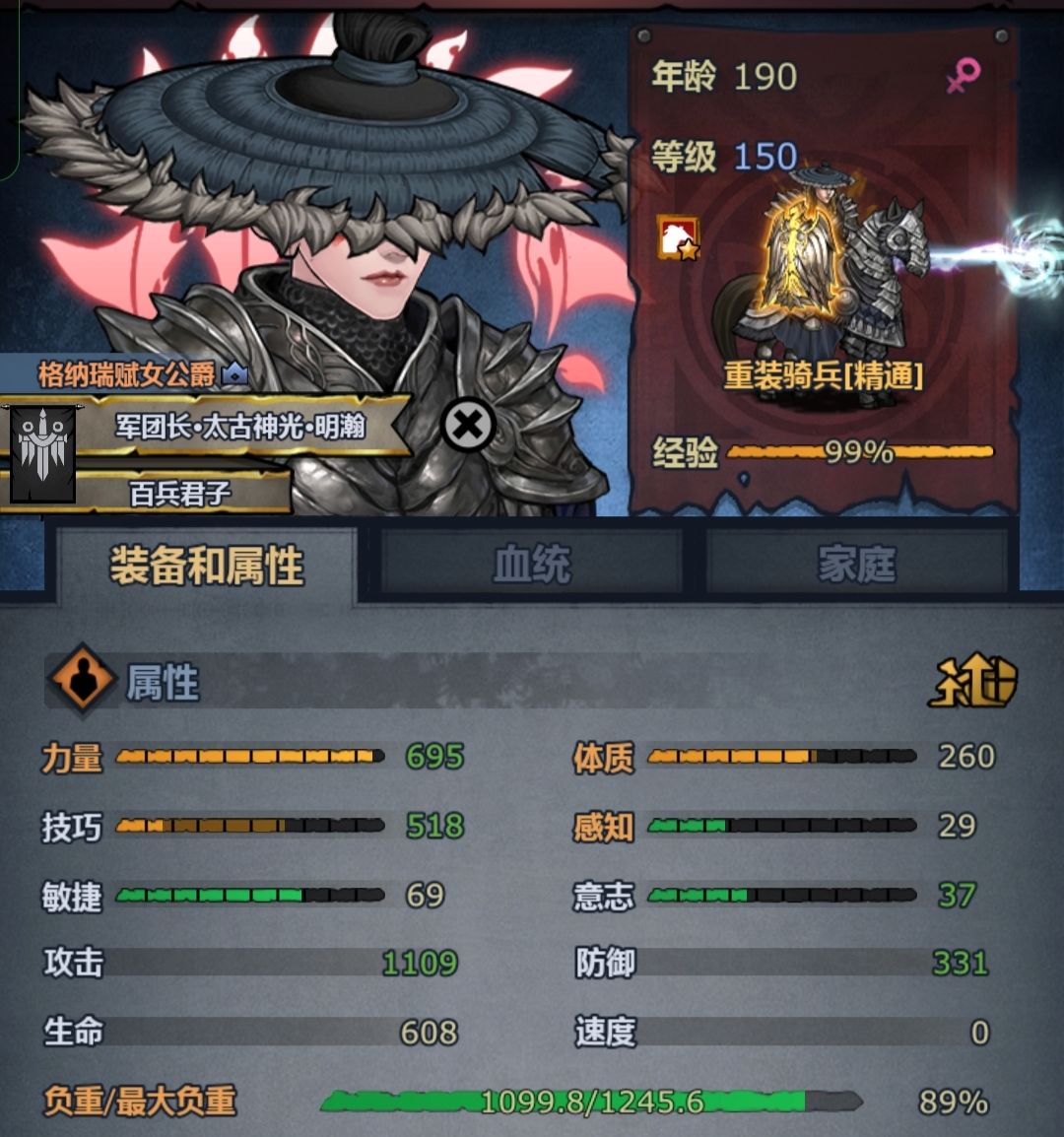 7.古神:极高力量的偏斜重骑,即使补足技巧,但本身更适合其他就业,可玩