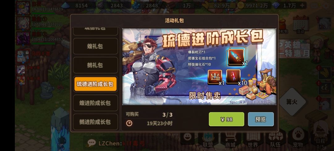 因为 sp1 + 信物 + 性药 + 橙武 卖 98r