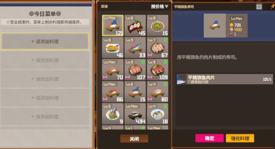 夜晚则将收获转化为寿司料理,经营专属寿司店,从亲自端茶倒酒、清理餐桌,到后期雇佣员工实现自动化运营,还能自定义店铺装修风格,打造独属于自己的特色店面。