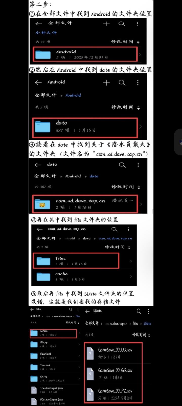 A:将保存好的存档文件内容整个移动到游戏文件中的SDate文件位置中即可