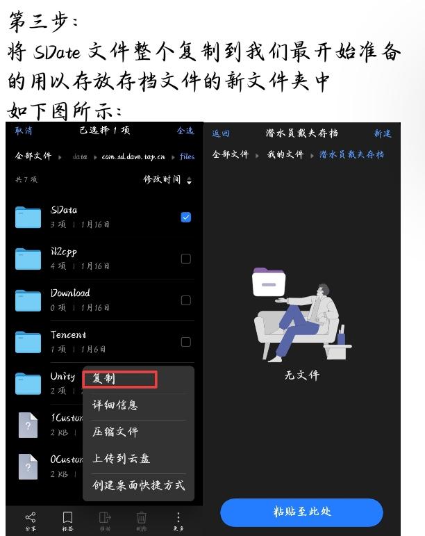 将SDate文件整个复制到我们最开始准备的用以存放存档文件的新文件夹
