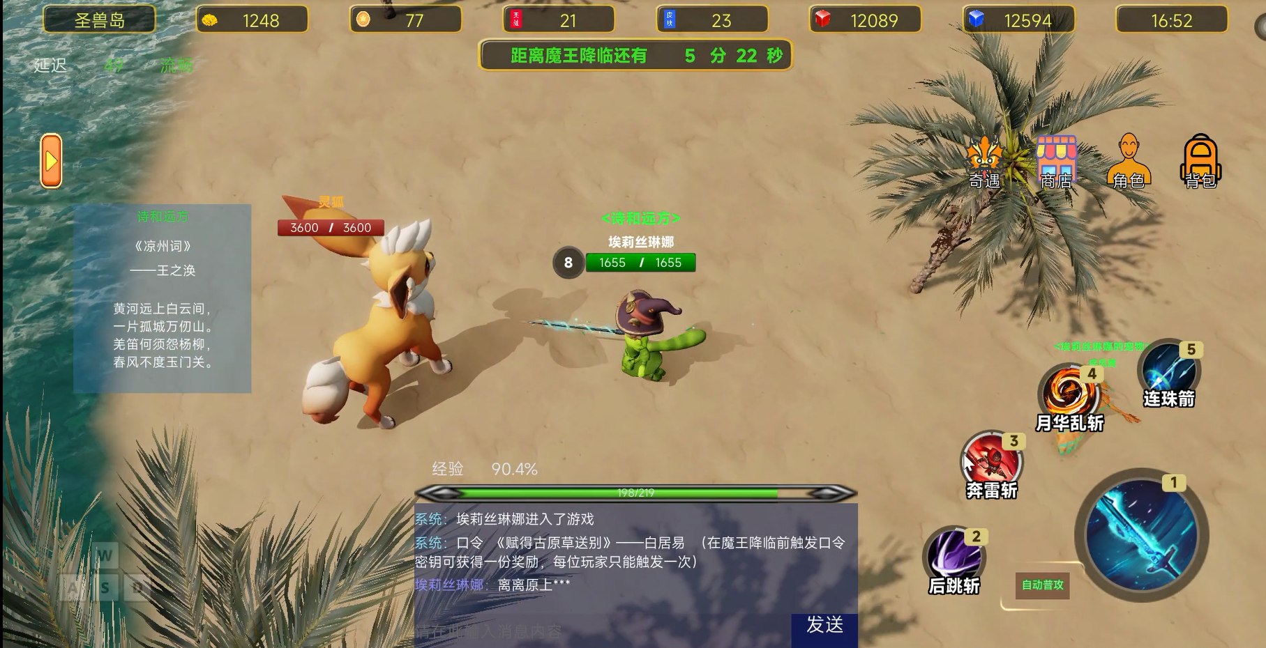 背景故事:传说有个叫圣兽岛的神秘岛屿,里面居住着几只实力强大的圣兽,如果能驯服其中一只做宠物就太拉风了,有位小魔女无意间获得两张圣兽岛传送卷轴,在使用一张后成功进入圣兽岛,但受到自身实力限制,未能成功驯服其中任意一只圣兽,只好无功而返,此时实力强大的你走进她的视线……