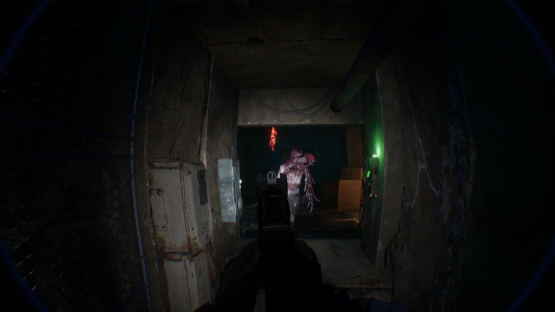 游戏的音效数量多,质感也很好。若有若无的脚步声、回音不断地金属碰撞声、急促低沉的呼吸声等很是写实,让人听了就心头一紧。另外,游戏在恐惧的氛围感上花了不少的心思,短小逼仄的空间、恍惚不定的亮光、神出鬼没的身影,这些元素加起来,让人直接毛骨悚然。
