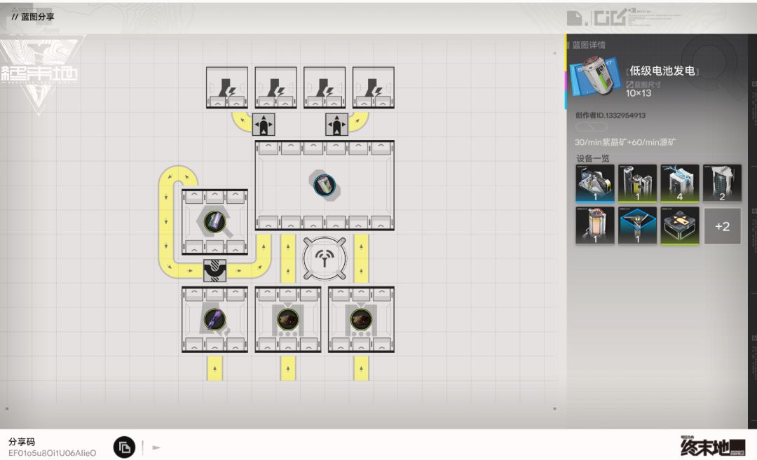 《明日方舟:终末地》蓝图分享码 EF01Oe4E7ao63I79oe4 请复制后前往游戏中使用。