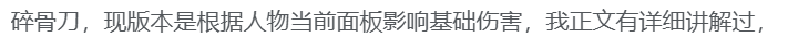 别急别急,碎骨刀机制还得解释一下:以前碎骨刀强压意思就是,你对该敌人暴击两次,第三次及之后的暴击会追加伤害,现在的碎骨刀描述是:攻击3层脆化以上的敌人,追加伤害,其中脆化层数为2时暴击就追加,这方面上碎骨刀旧版新版都一样,都是如果暴击两次后第三次暴击及之后暴击均追加伤害。这俩者区别就是,强压变成脆化了,甚至裸碎骨刀还能有脆化增伤。