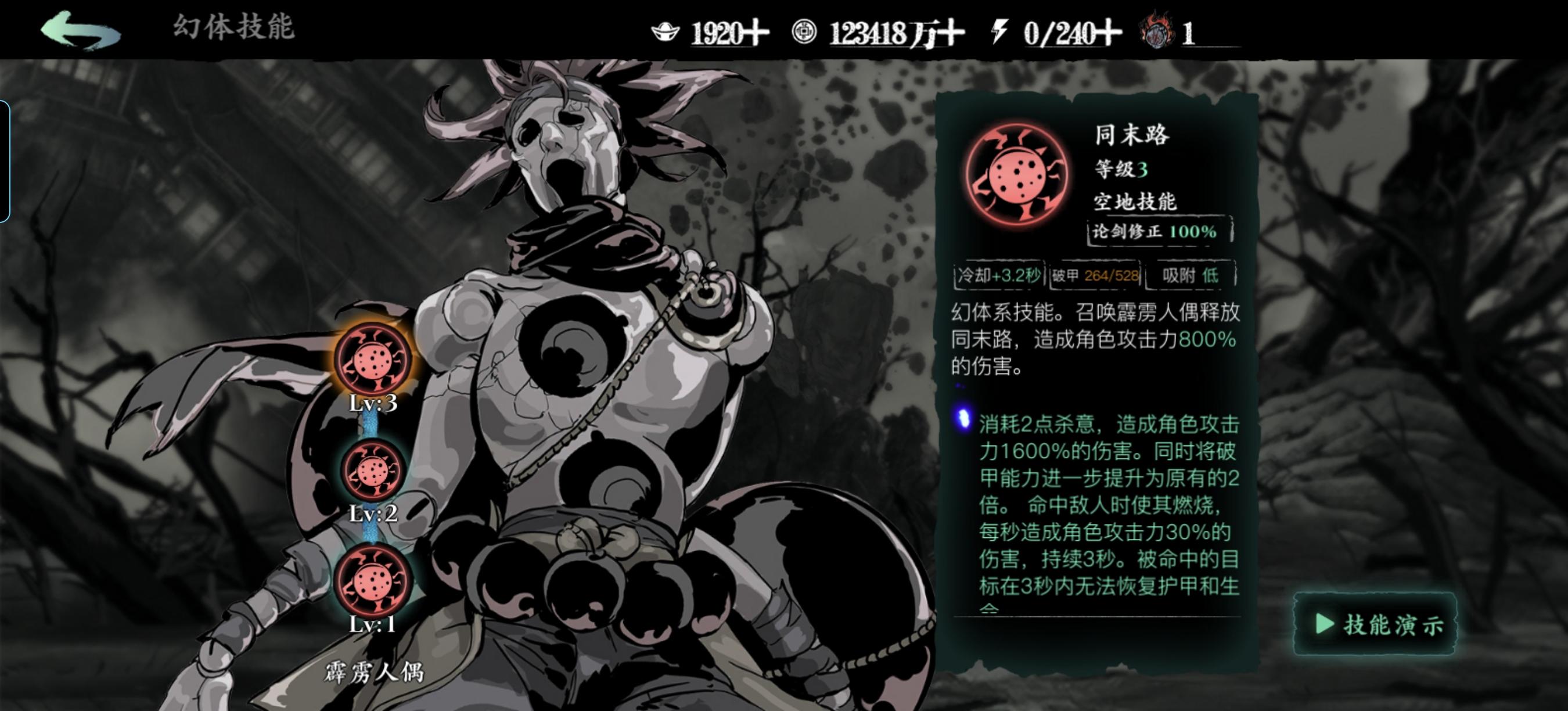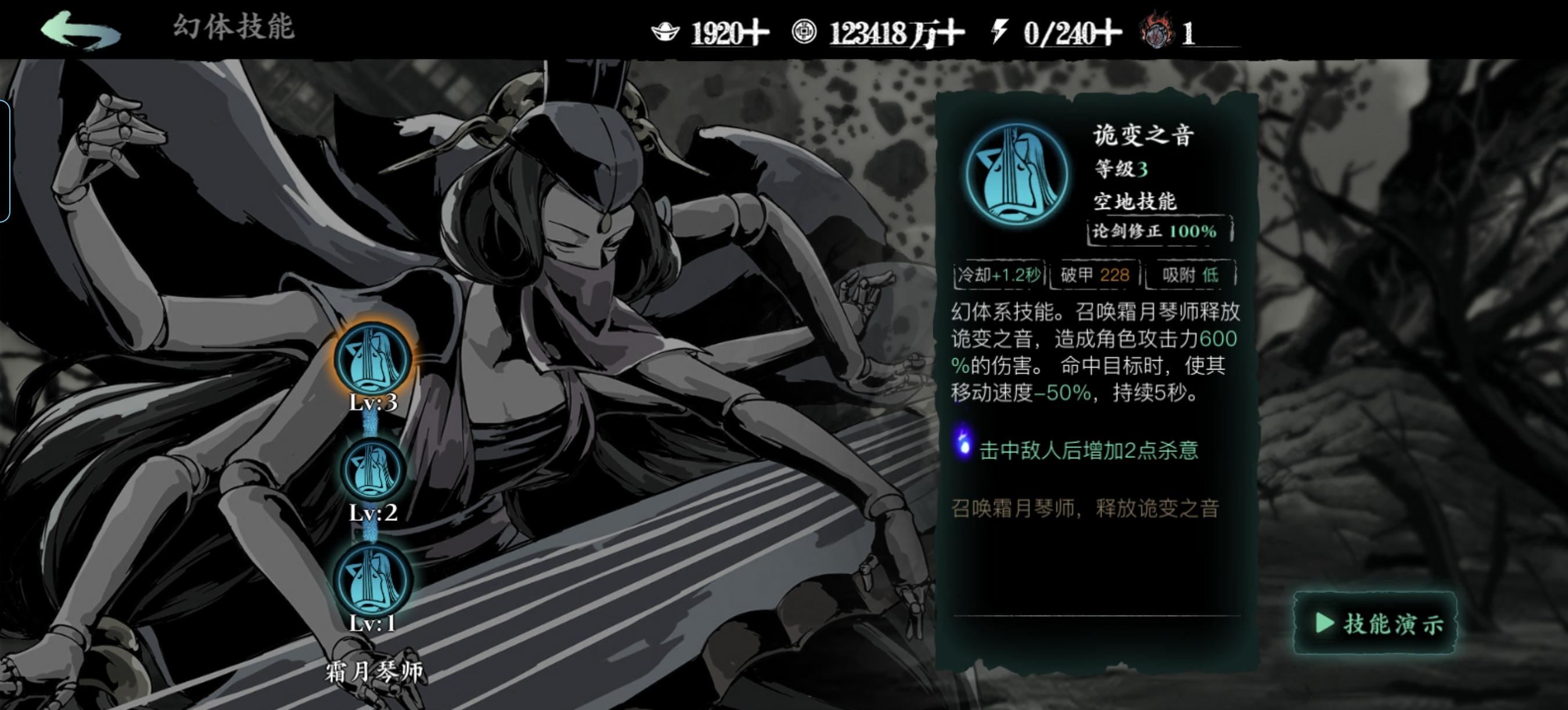 这两个技能几乎是必带的,调杀意的同时也能带来非常不错的整体伤害增幅。另外基于幻戮增幅的效果,需要携带四个不同幻体的技能,所以这两个强幻体的其他两个技能都可以不带,无脑选择这两个技能即可。
