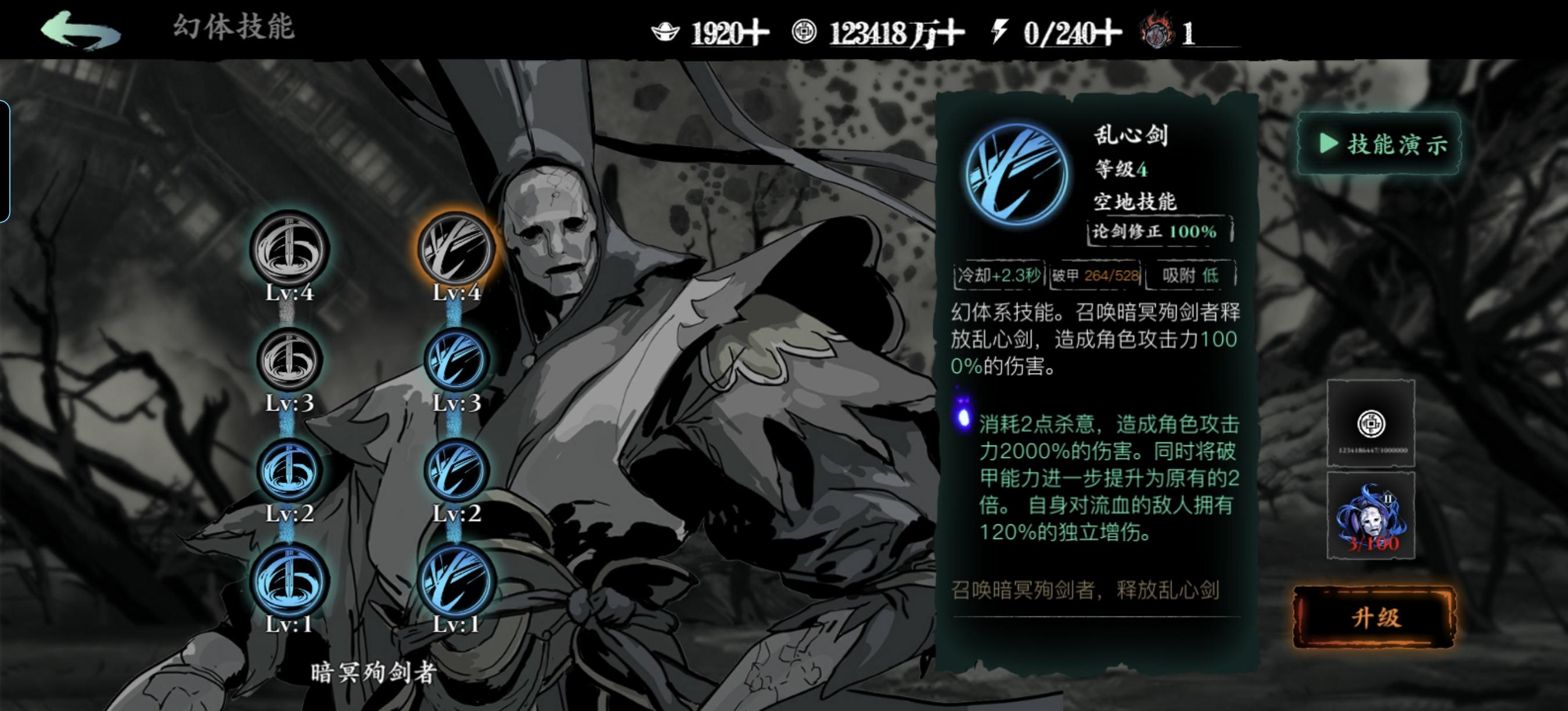 毕业:带幻脉觉醒、幻体不灭、幻戮增幅、幻象超载,毕业条件是调整好杀意即可。