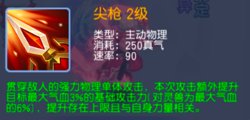 灵珠子的主动技能可以直接提升基础攻击力。注意它不同于伤害结果,它是目标最大气血3%的基础攻击力,按照现在109级的玩家,普遍都是2万血,20000*0.03=600!直接给宠物增加了600的伤害,针对灵兽的话达到了6%!在这样的一个恐怖加成下,可以说一枪一个小朋友!