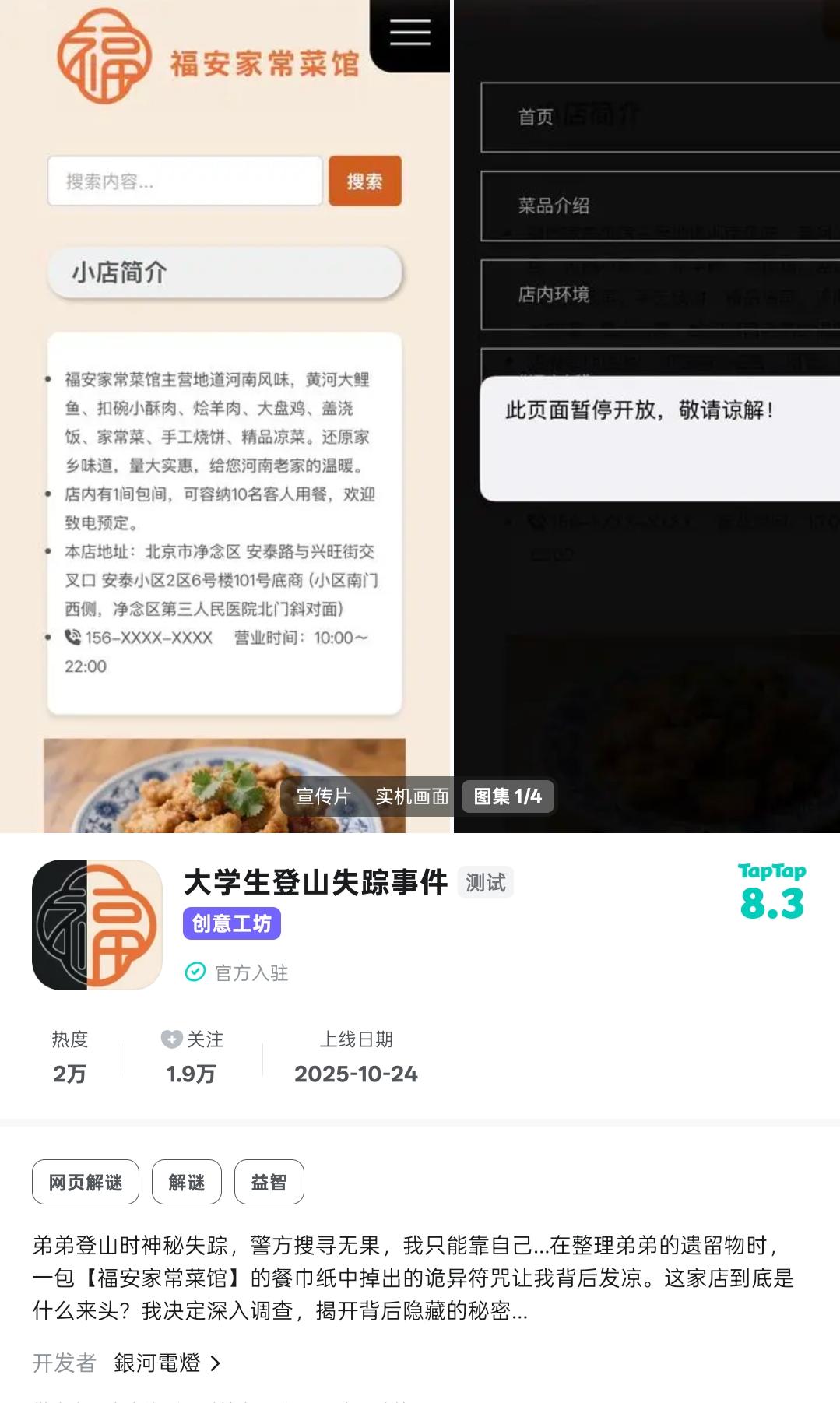 2025年10月,《银河电灯》工作室的网页游戏《大学生登山失踪事件》意外破圈。