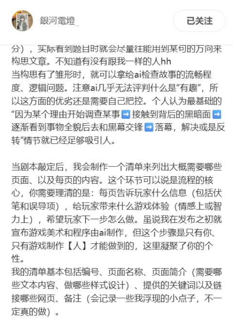 如今,AI等工具的兴起深刻改变了游戏开发的局面,《零基础AI做网页游戏》、《三小时做出自己的ARG》等教程贴如雨后春笋。