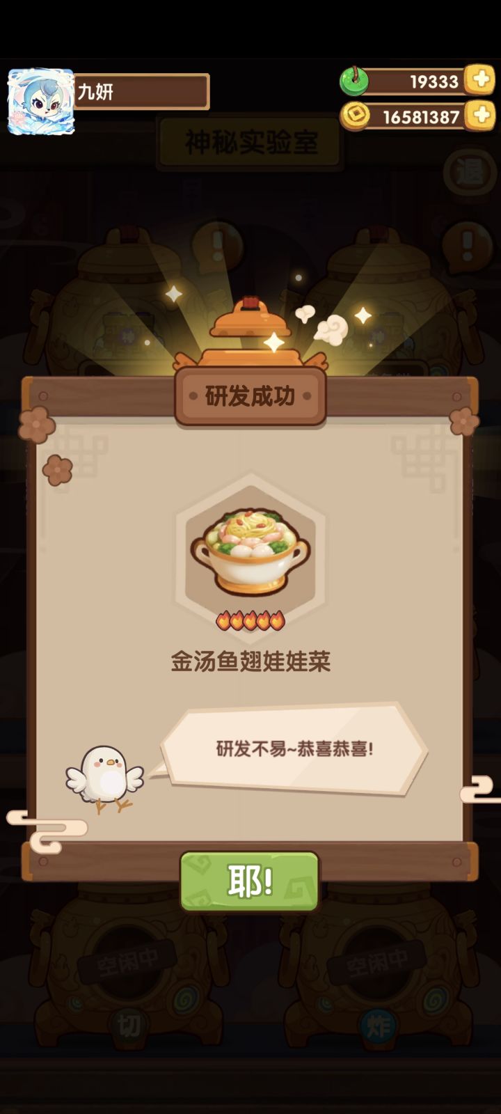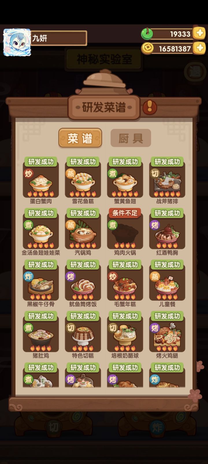 实验室只差一个菜谱啦