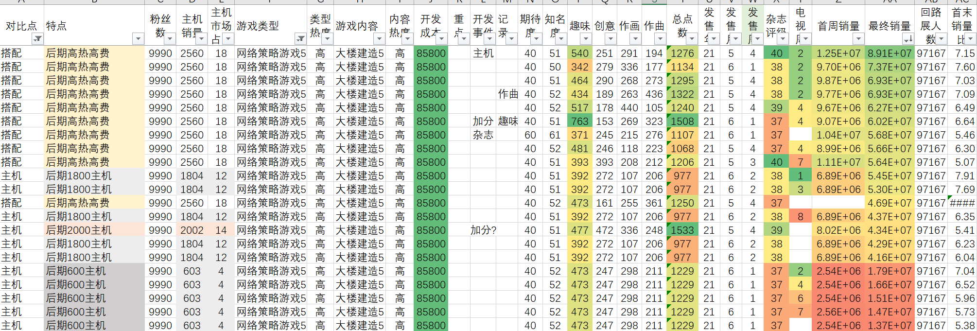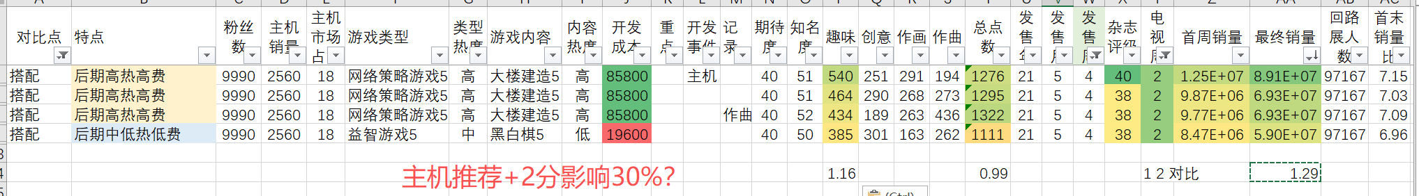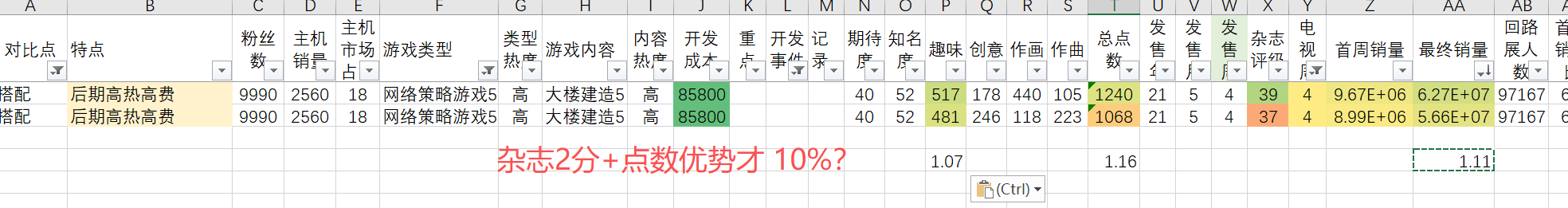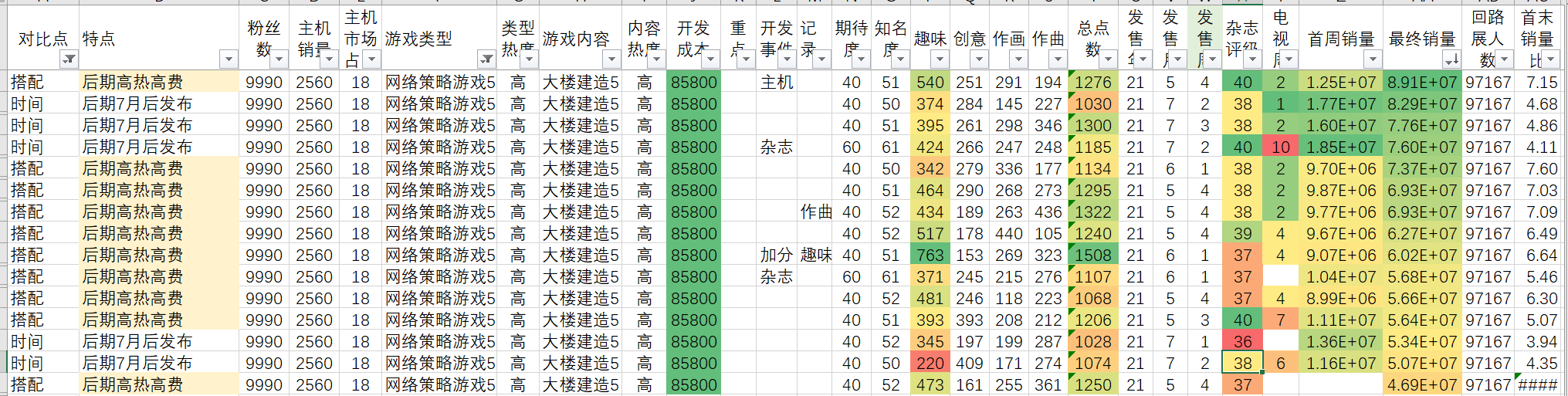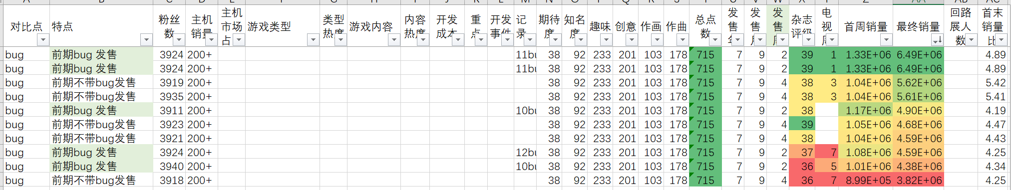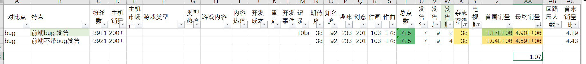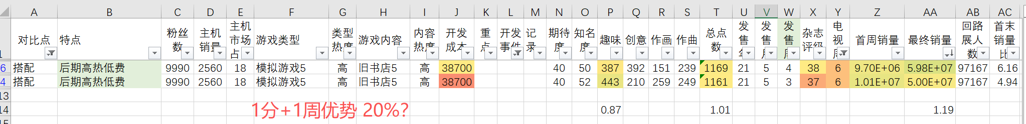 后续对比:分数不容易一样,不过可以都没有事件,打分一样对比,发售时间可以通过带bug发售打平,或者错过7.1 和 12.1 特殊时间点