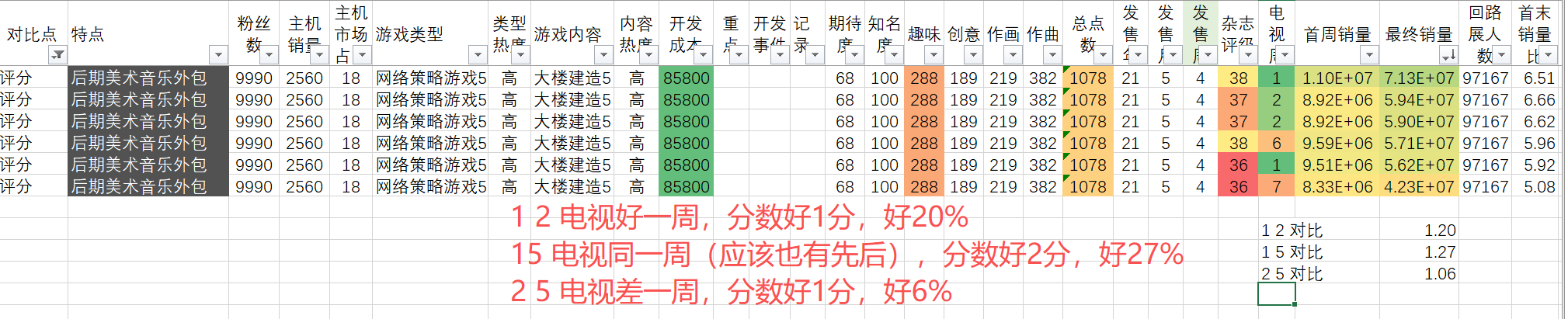 下面看,对比第3 4 5个,杂志评价高1分,但总分低一些,最终销量相当, 感觉音乐作画分数高一点还是更重要一些?