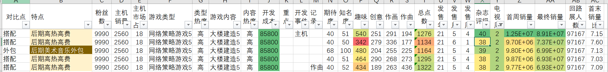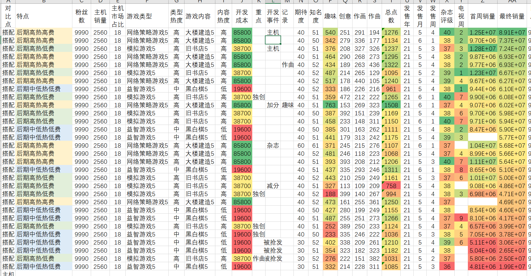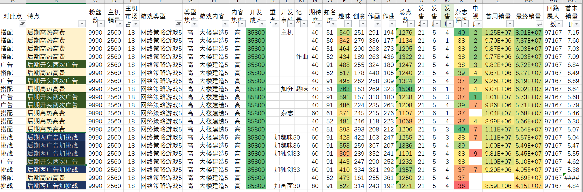 - 搭配:热度和成本越高,整体感觉越好,是因为影响事件概率么?
