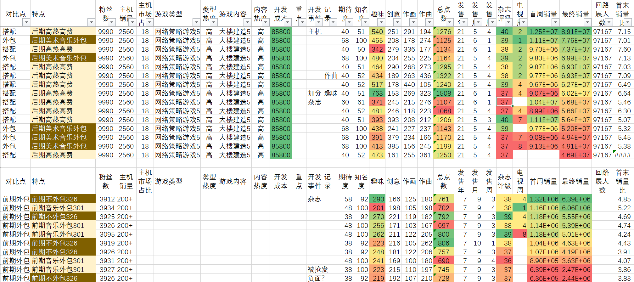 - 开发中事件:正向主机推荐 ? 杂志推荐 > 分数暴增(灵感),负向停电(只有这个开发后无法sl回避),丢数据,其他同类游戏发布,具体数值不好测,但是 正向 20% 以上,负向 40% 以上