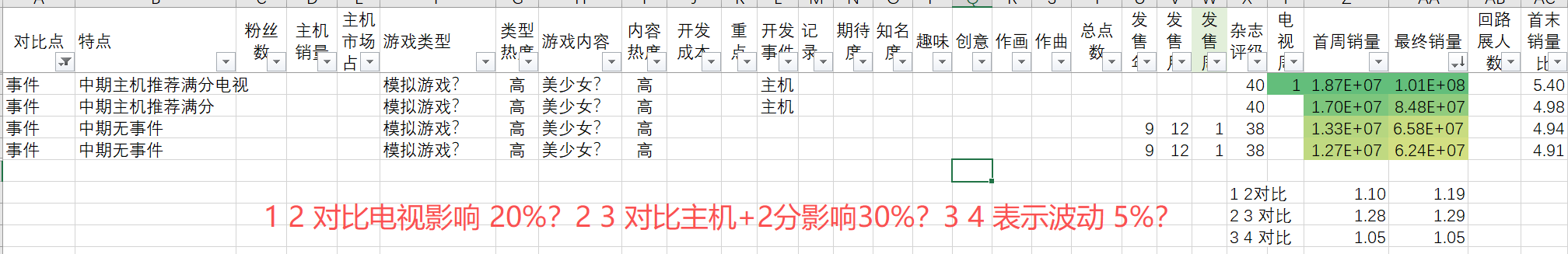 - 期待度,热度:比如外包,挑战影响,感觉对销量没有直接影响,是影响事件发生概率么?