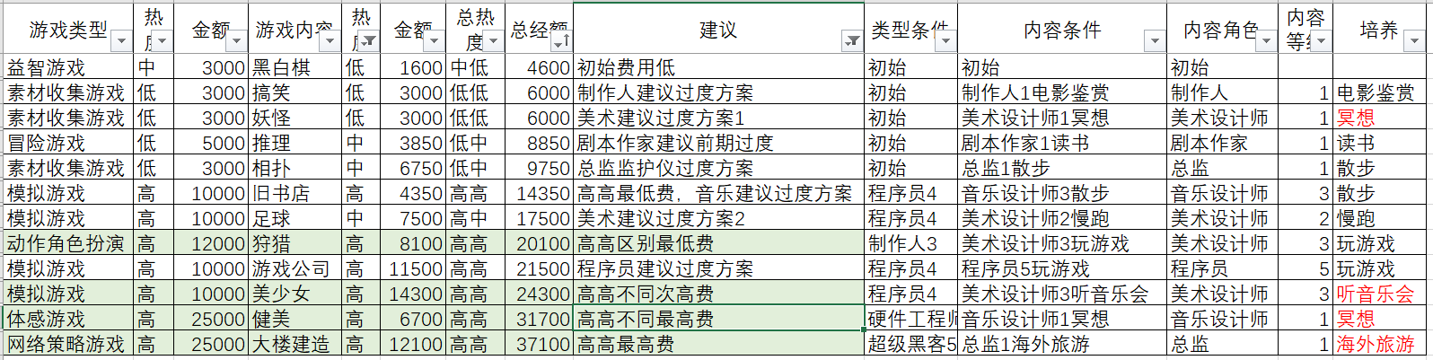个人觉得稍微重要的是音乐3散步旧书,总监1海外大楼,美术3玩游戏狩猎、听音乐会美少女