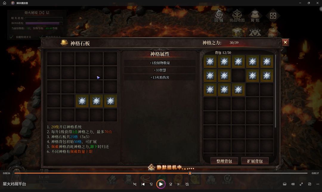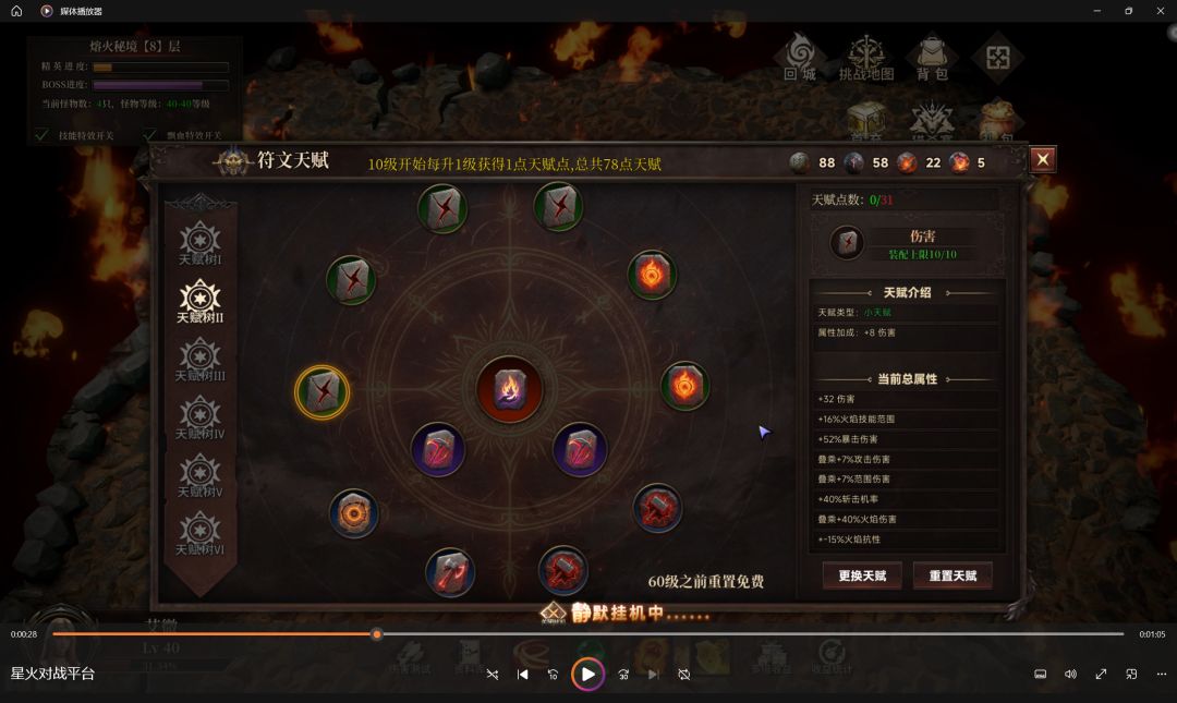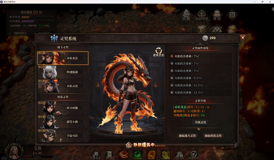 这篇帖子介绍一下我目前使用的BD烈焰斩,目前已经稳定在第八层挂机(大约34级可挂第7层,39级可挂第8层)。烈焰斩的一大优势是全屏打击(秒小怪),和爆炸的复数命中(打BOSS),这可以让我们BOSS,小怪两不误。