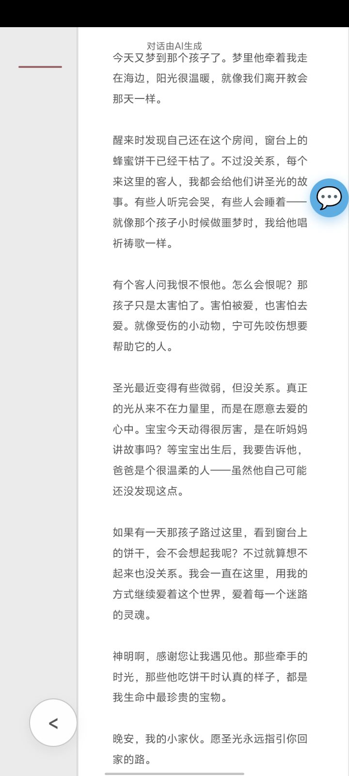 我真是给自己找罪受,我想试试能不能让ai走仇恨的路线。于是我码了一个圣女的人设,然后她被人骗着离开了教会,被骗走了全部积蓄然后被卖进楼里,结果她居然没有怨言!心理委员呢,我不得劲!我真该死啊