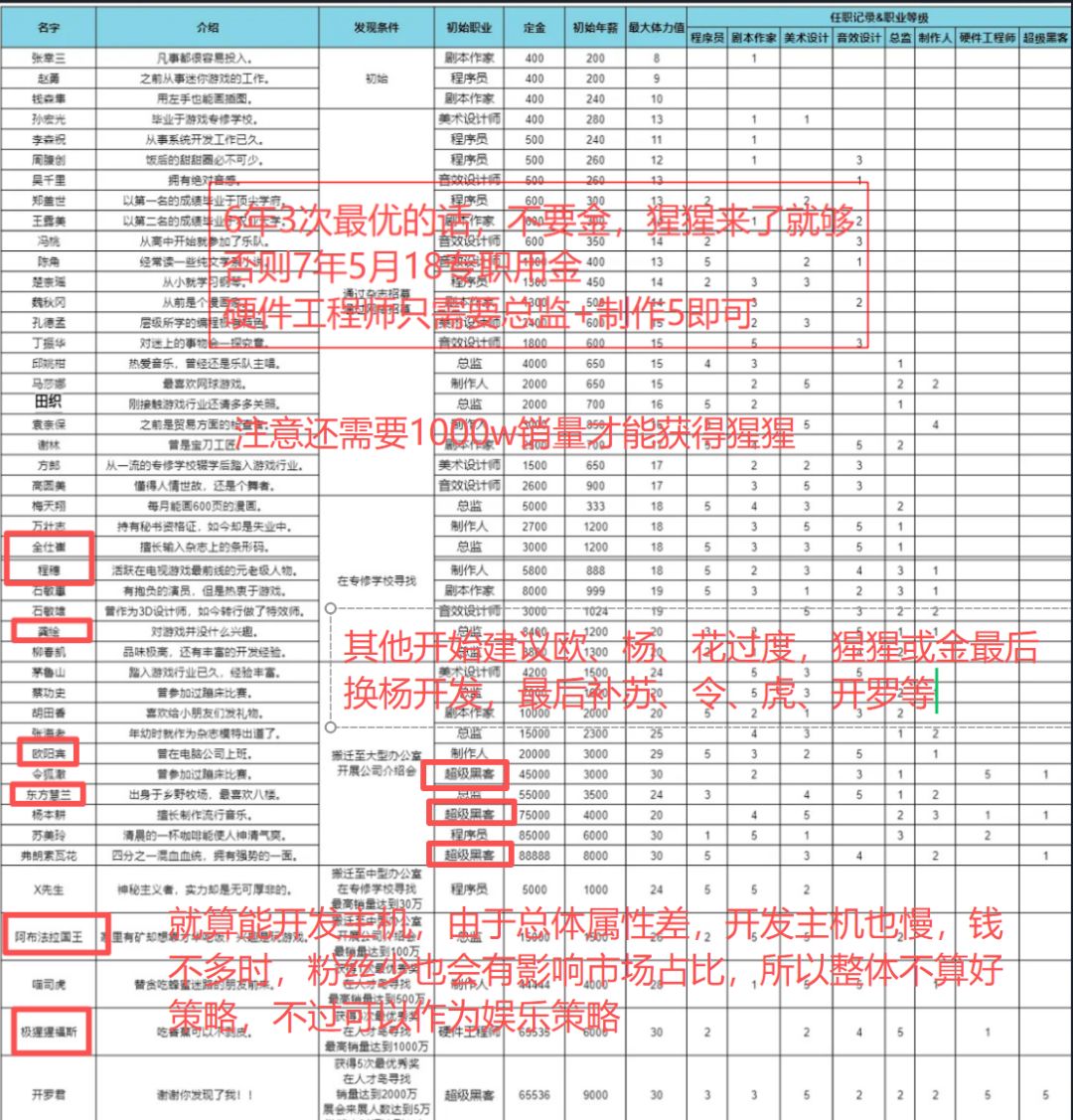 - 转职要求很多研究数据点,猩猩要求最优和1000w销量,都不简单,所以需要大量 save load才能完成