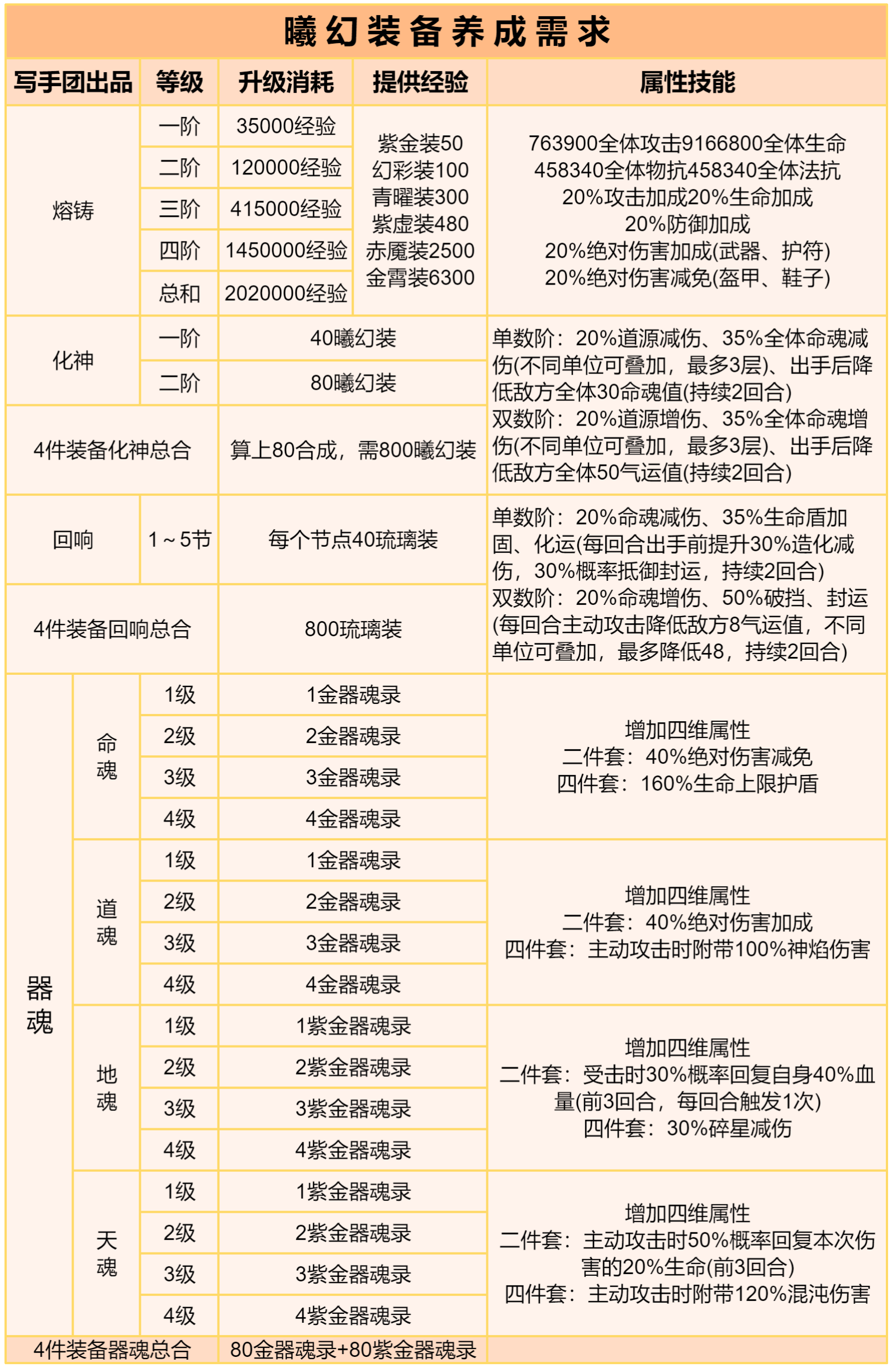 再加上曦幻装备化神技能中有个不同单位可叠加效果(按11阶算):我方全体命魂增/减伤提升20%,可叠加3层,持续整场战斗。