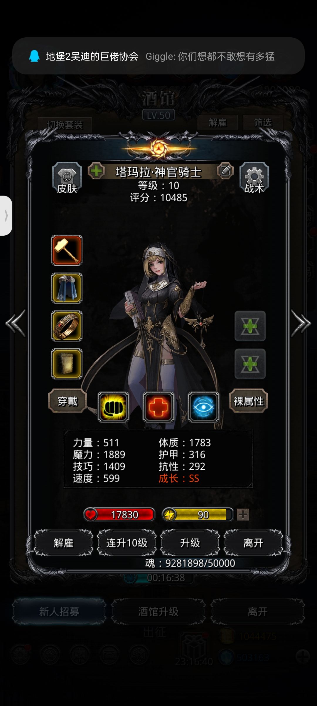 缺装备建议另拉一个神官/圣殿(日阶或者月百堆技即可)