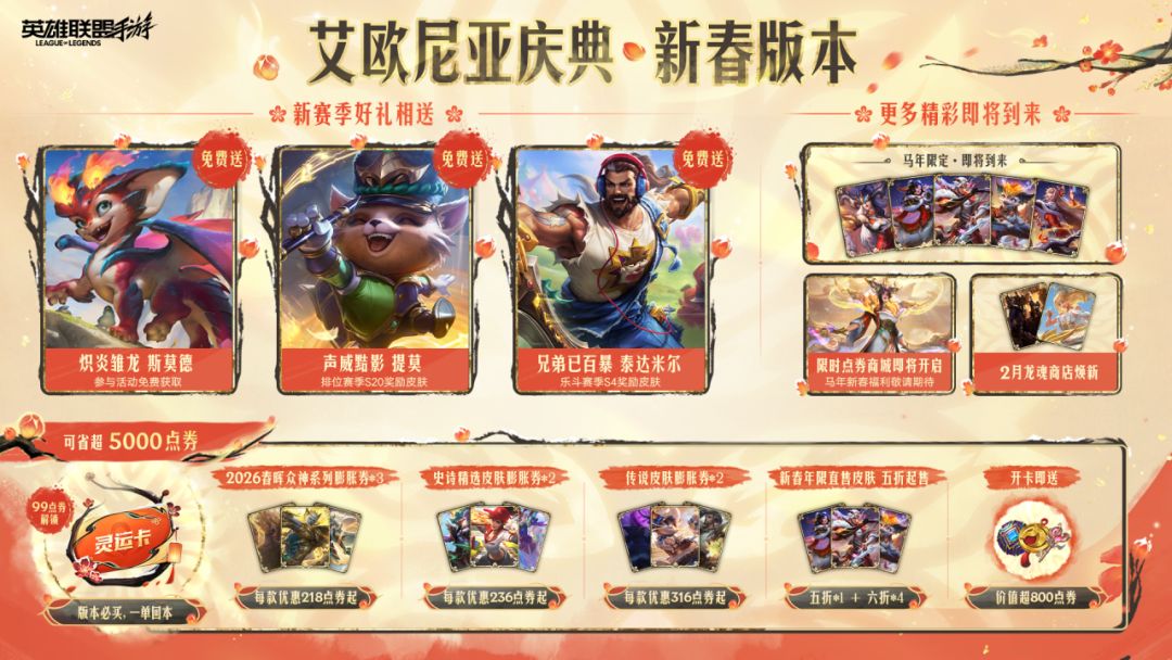 7.0“艾欧尼亚庆典”新春版本福利堆满!新赛季好礼相送,灵运卡超值折扣,还有更多精彩即将到来~