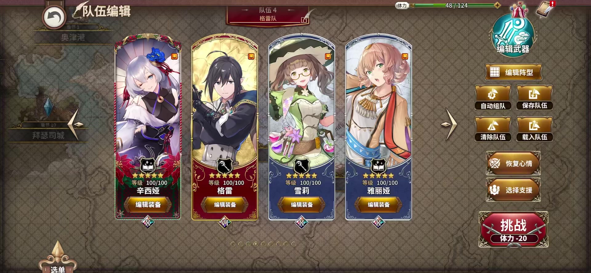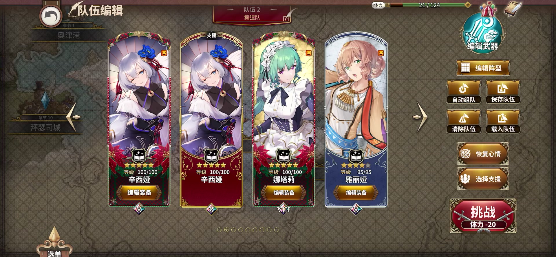 卡蒂娅:辛西娅对友军使用武器书自身会回复,配合卡蒂娅的回血触发拉条的占卜,如果自己和队友都有回血占卜,那真的爽的飞起。基红白狐狸组合真的很不错了,推图体验良好,其他两个位置可以上一输出+一书,大家感兴趣的可以试试。