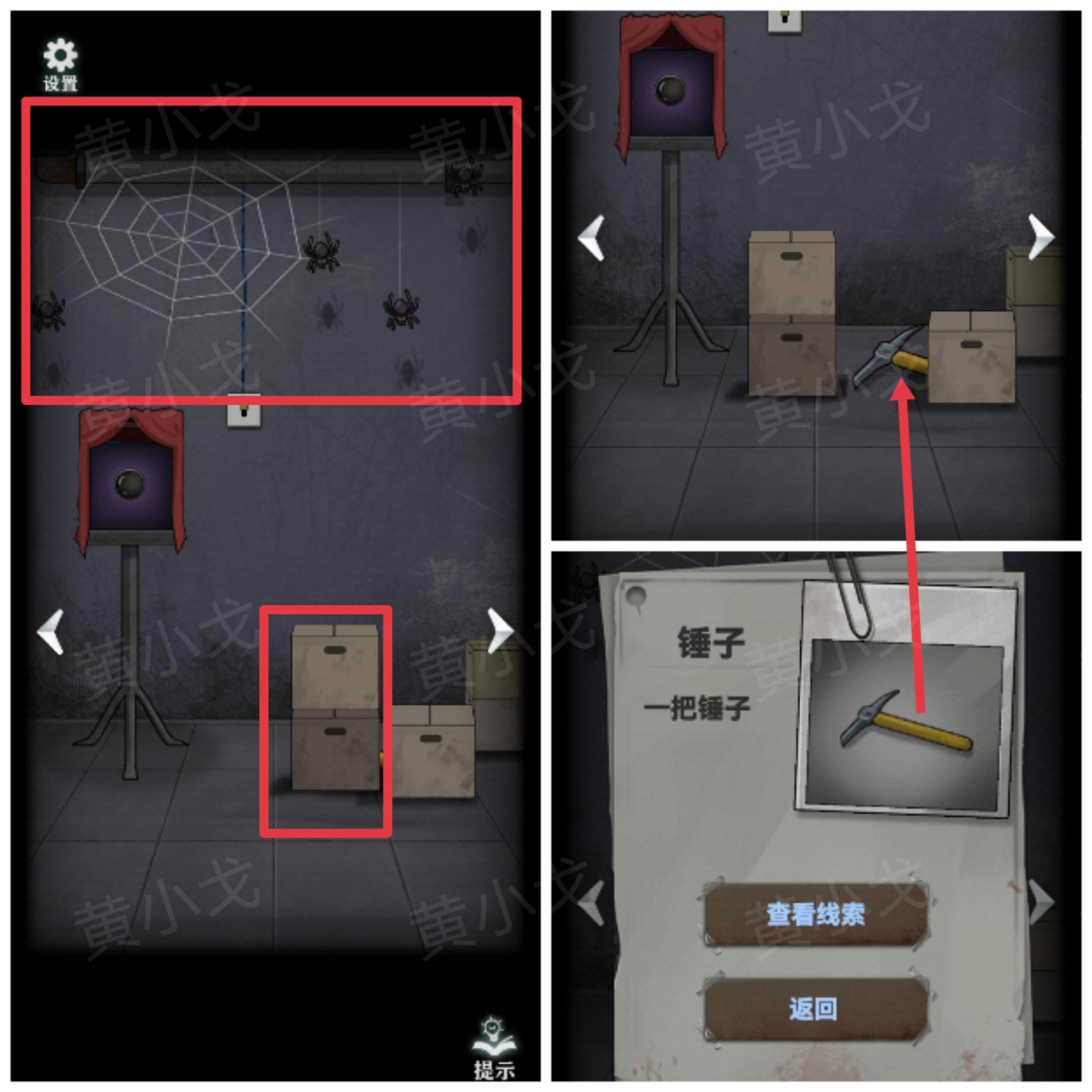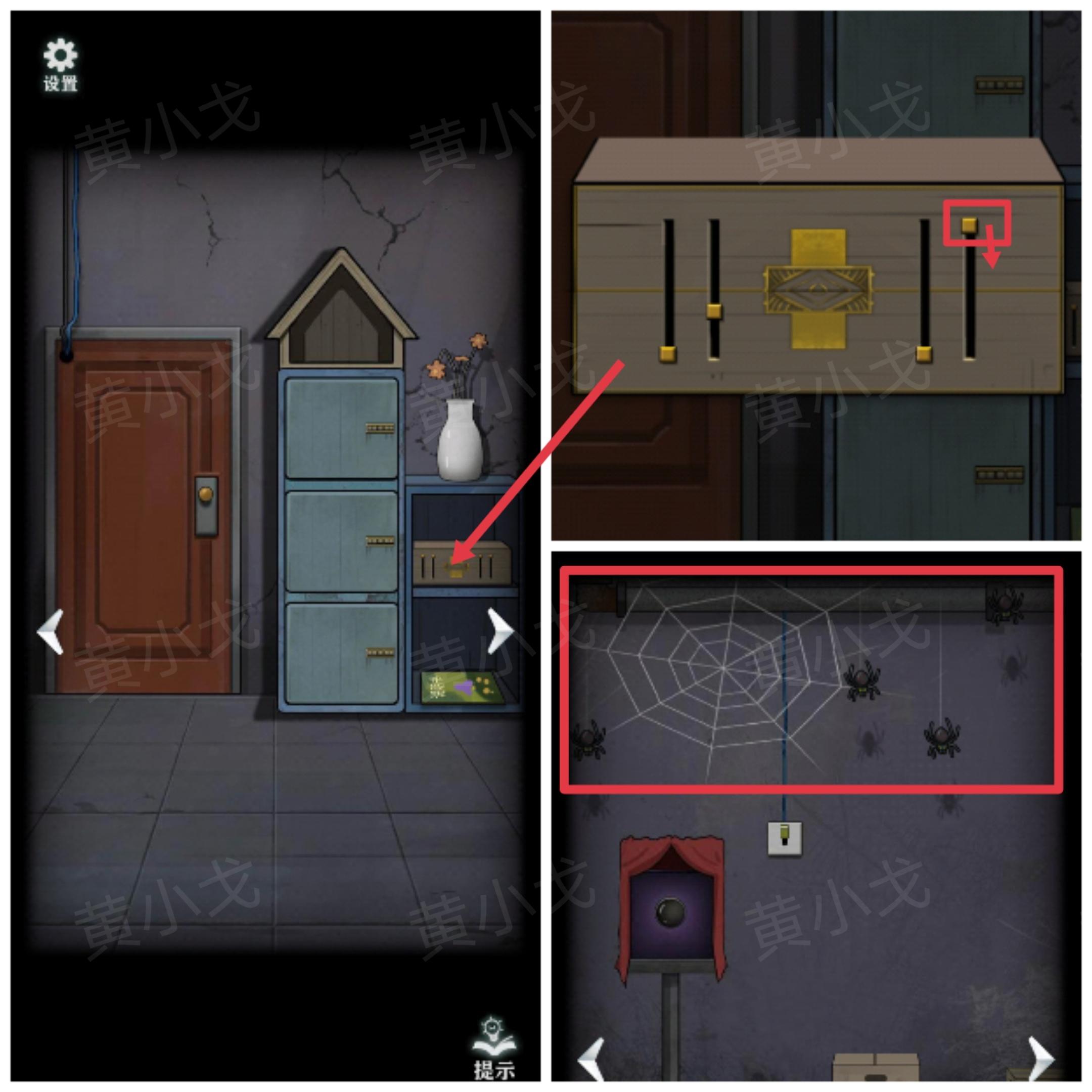13.点击柜子中的盒子上的机关,根据[相机]场景蜘蛛的位置,调整机关