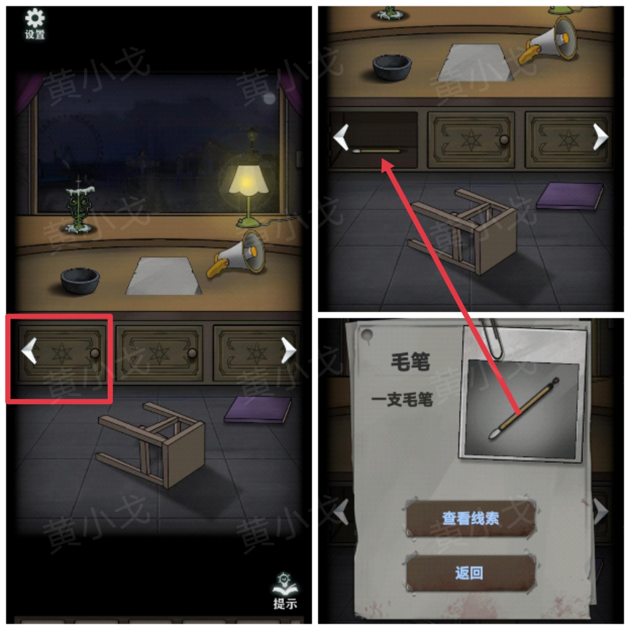 2.打开左侧柜子,获得【毛笔】
