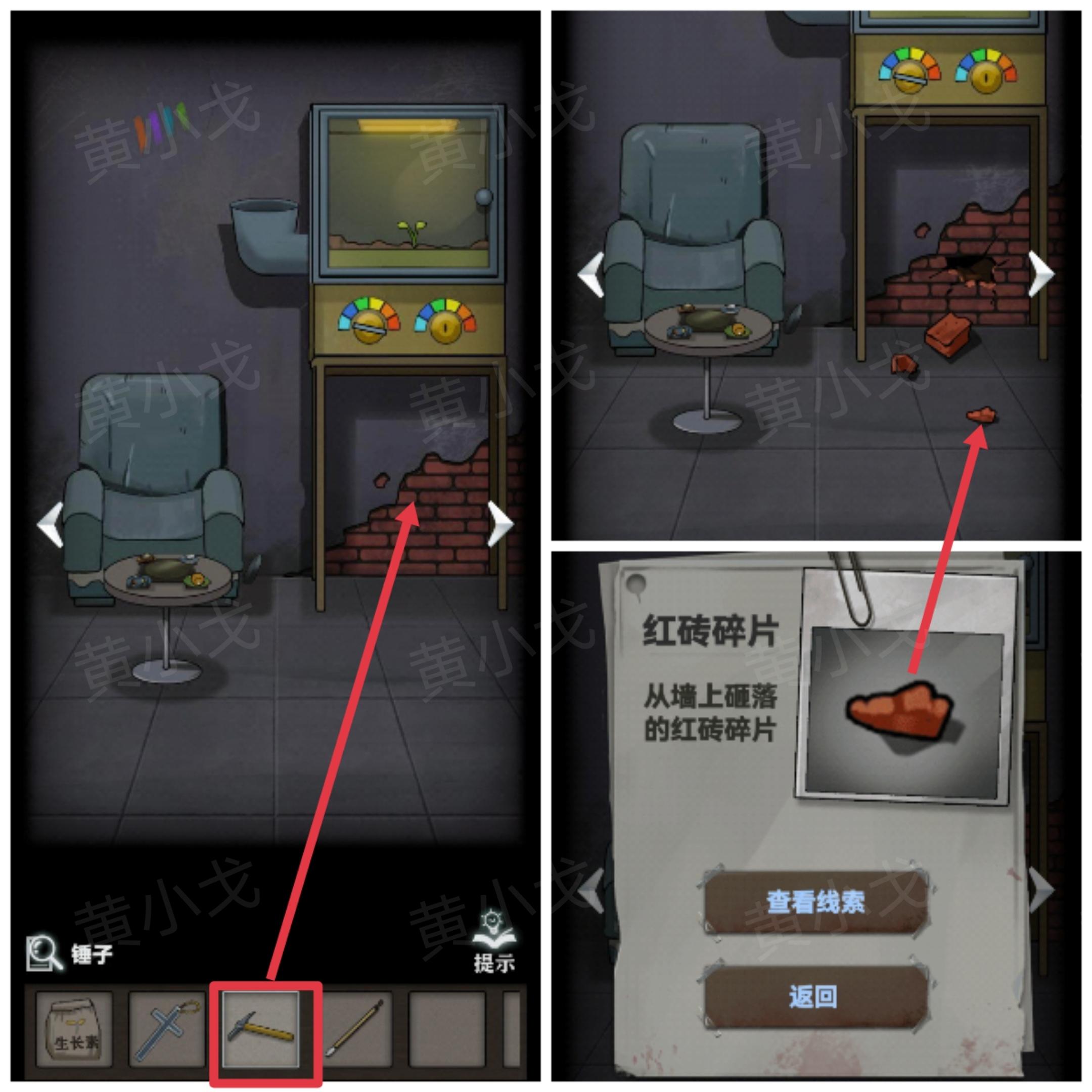 24.用【锤子】敲开剥落出来的红砖墙,获得【红砖碎片】