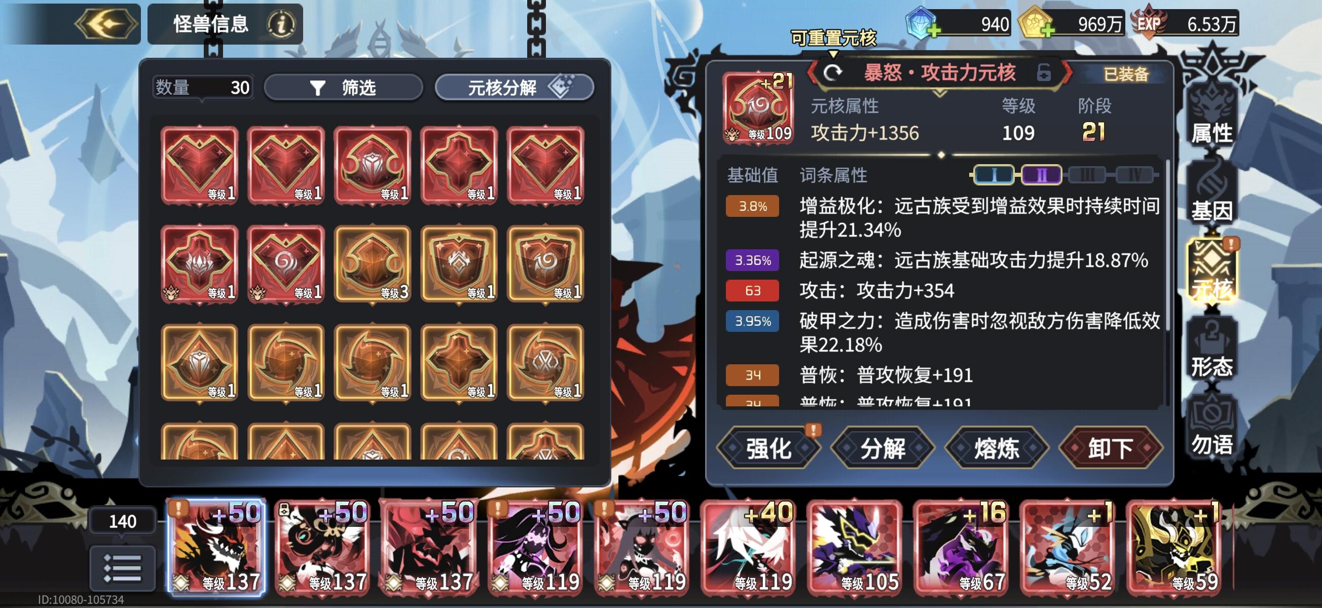 主要看特殊词条和宿命,每种词条都有适配的种族,可以看其他大佬的元核攻略