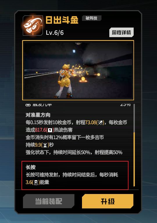 3.再说长按,就算长按才是本意我也测试过,我明显看到破阵2的状态图标有灰色进度在重复的刷新这个又是为什么呢,既然描述说耗能可以持续,那我在能量充裕的情况下应该是不会刷新的吧;正常逻辑应该是直到能量耗尽自然终止要不就可以一直发射,而且中途我也没重复按破阵技。