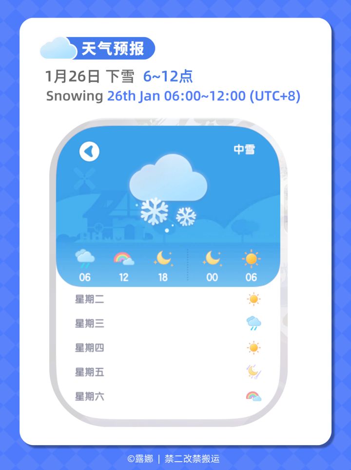 SnowingTime: 26th Jan 6:00 ~ 12:00 (UTC+8)