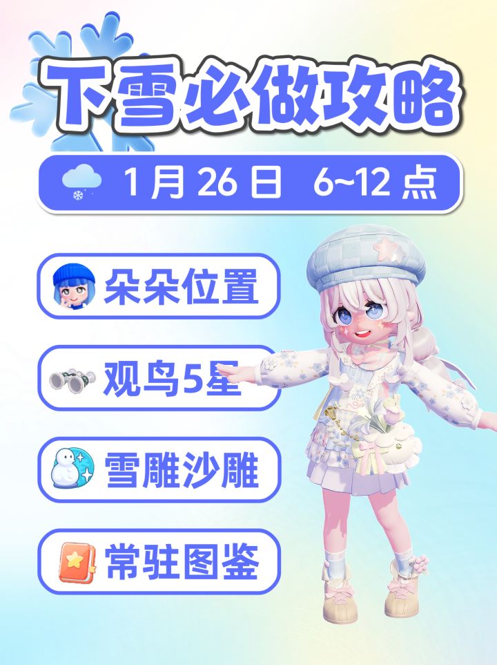 1月26日小镇下雪必做攻略 朵朵位置雪雕沙雕
