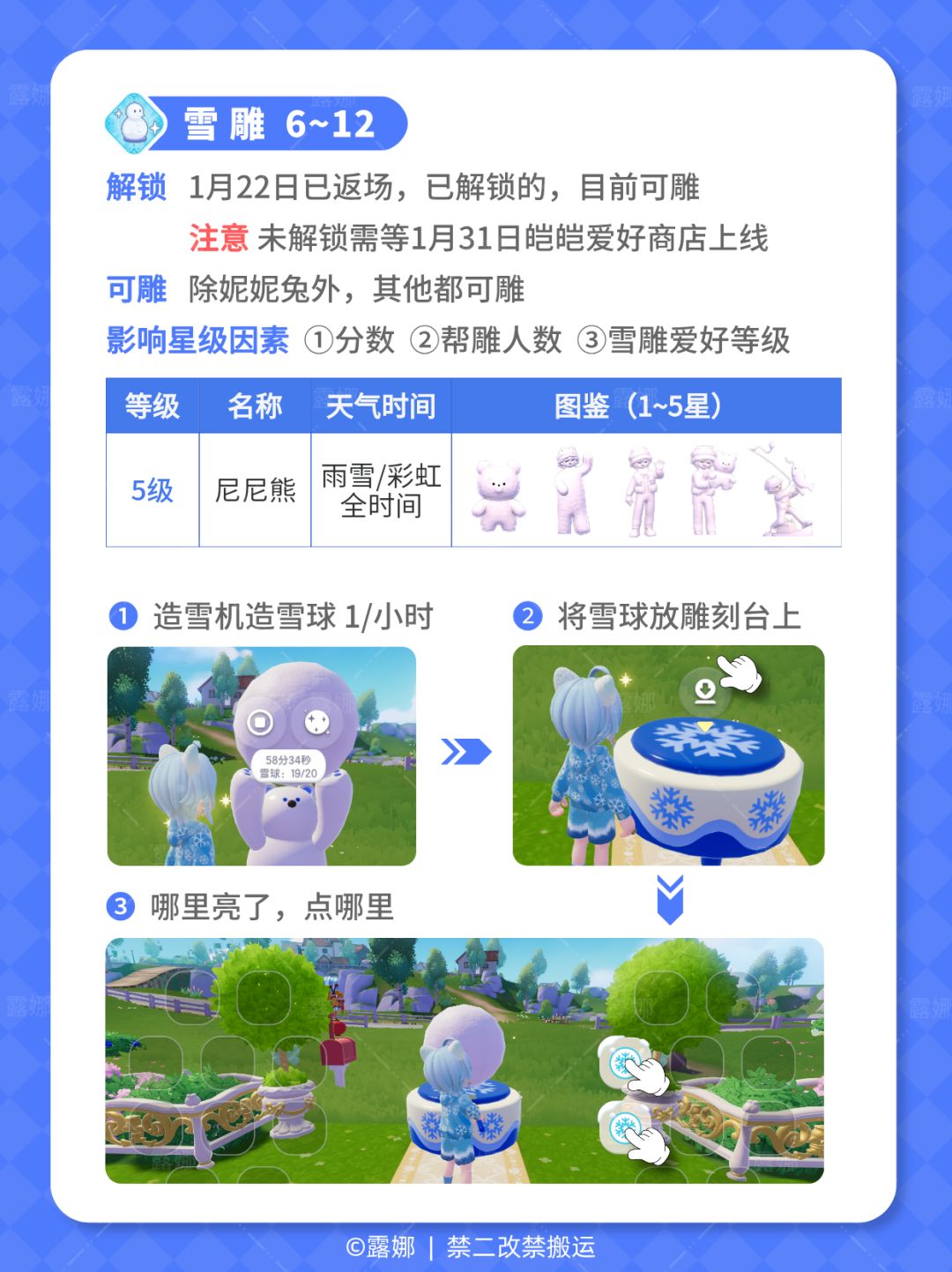 ①找朵朵买糖买伞②雕雪雕堆沙雕