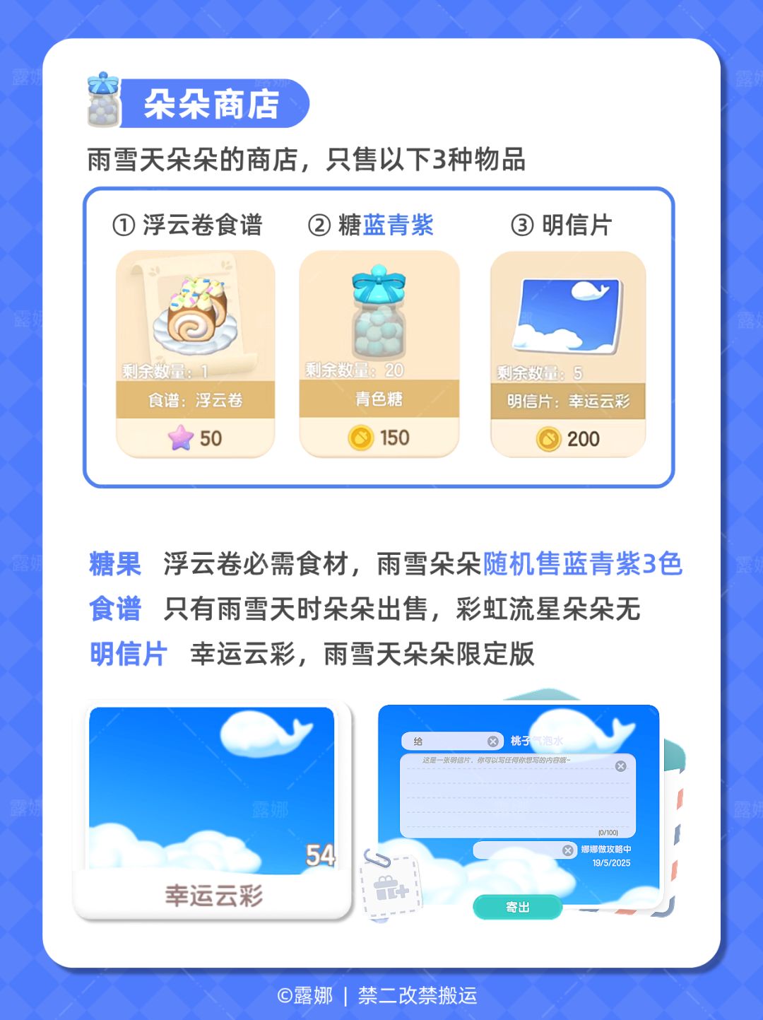 ① Find Doris to buy candies and umbrellas
