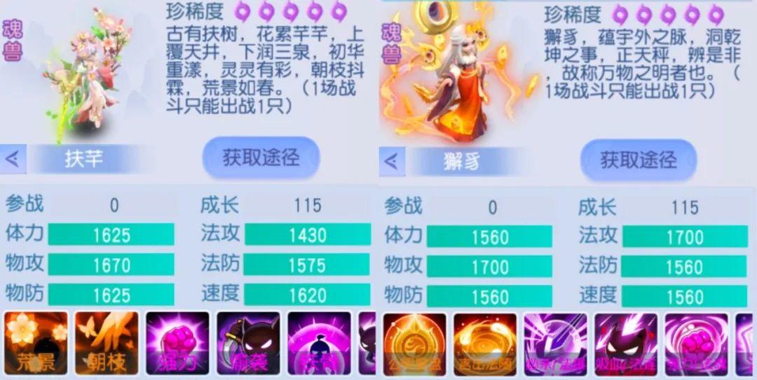 他们两者的相同就是克制能力的相同,我们可以看到这两只宠物,都拥有非凡无比的克制能力,虽然说扶芊总体更为全面,但是扶芊的获得难度也是相当大!
