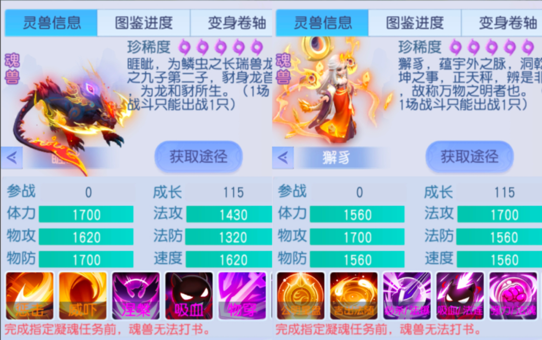 从资质的对比来看,睚眦相对来说更均衡一些,獬豸则是生存方面略逊一筹!但是输出方面是比睚眦优秀了许多!