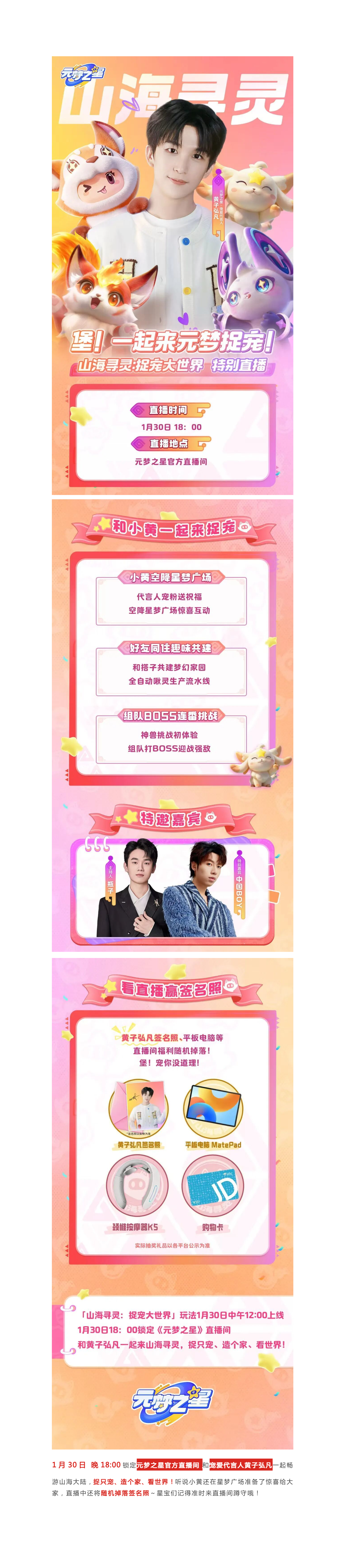 黄子弘凡「山海寻灵:捉宠大世界」特别直播1月30日18:00准时开启!和黄子一起来山海寻灵捉只宠、造个家、看世界吧!