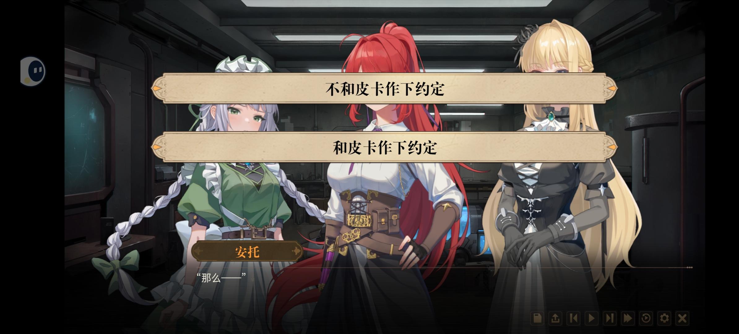 皮卡:在4个选项“集市街”、“和皮卡说明”、“拥抱上去”、“和皮卡约定”中选择3个即可解锁结局“归宿A/B”。end1解锁归宿A,end2解锁归宿B。选择数量小于3个则解锁结局“迷惘的追忆”。