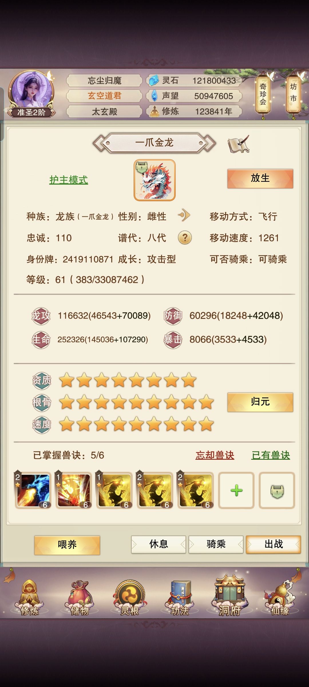 总算熬到450级聚灵了,可以开九爪,看了一下经验把八代的经验拉回到55级就可以搞到九代了,成就五九至尊金龙