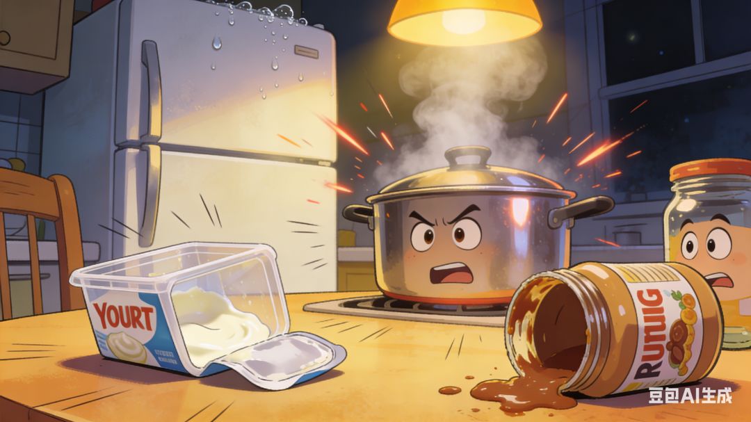 冰箱门在震动,蒸锅发出预警的嘶鸣。饿魔先锋军——由半空酸奶盒和见底花生酱罐组成的“残部侦察兵”,已趁着夜色在餐桌上建立了滩头阵地。一场围绕营养与尊严的厨房战役,一触即发。