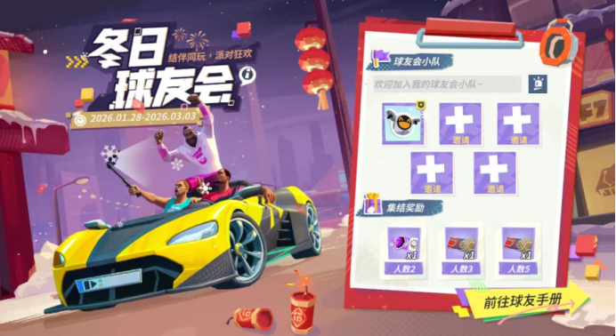 兄弟齐心,福利加倍!1月28日,[冬日球友会]限时回归!邀请兄弟组成球友会小队,组队开黑的快乐走起!当队内成员达到指定人数,还能解锁群星汇集券、潮人券奖励。