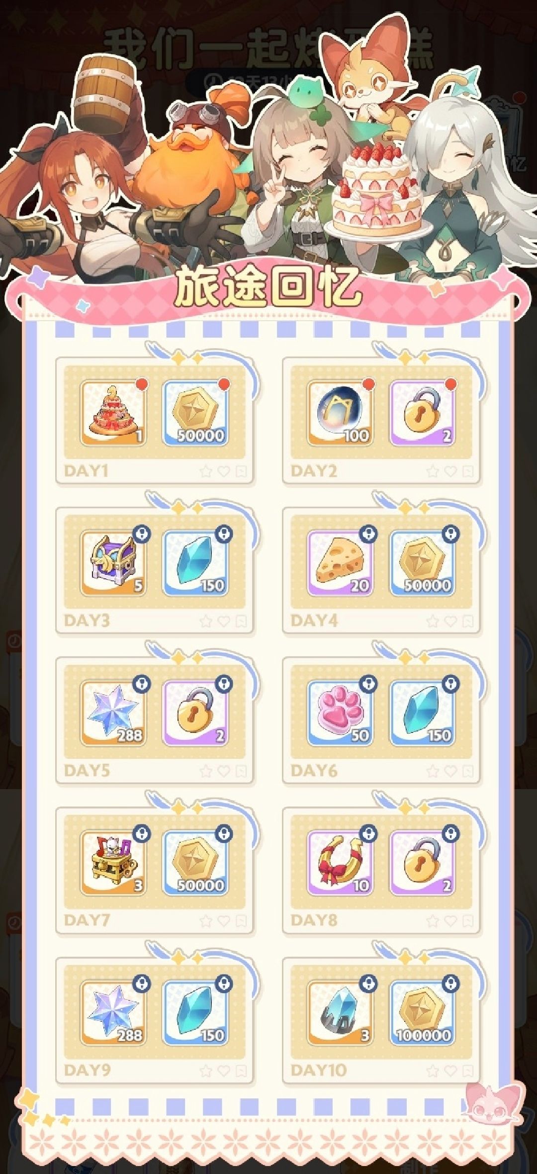 右上角还有一个签到奖励,可以获得一个大蛋糕家具,和一些资源