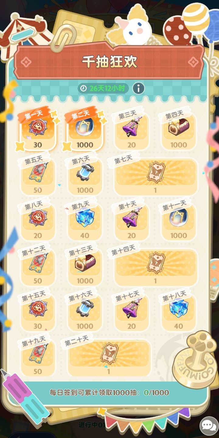 签到累计领取各种抽,合计1000抽