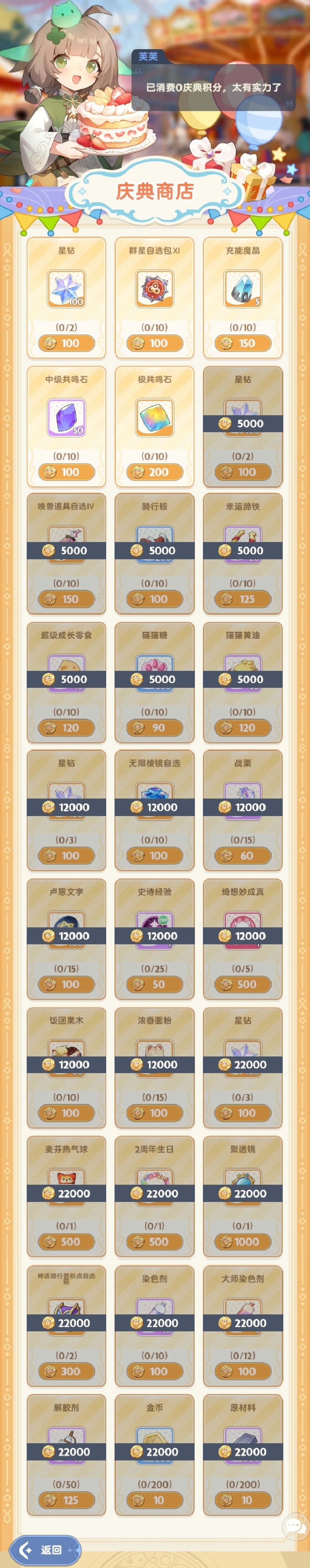 制作蛋糕和完成目标都可以获得庆典币用来庆典商店买东西