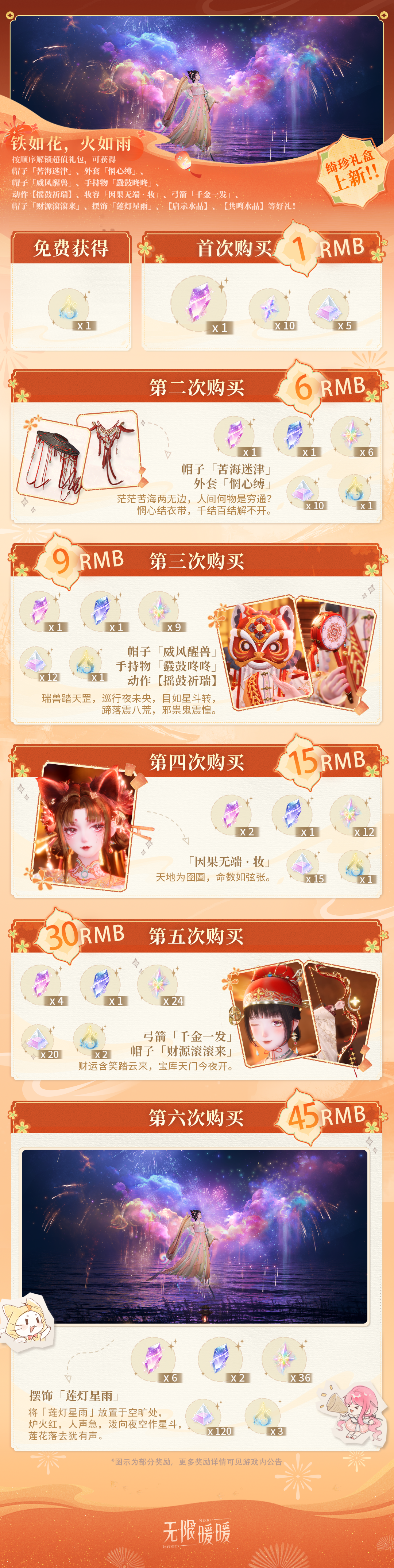 ● 活动期间,前往「商城-甄选礼包」页面,可购买「新岁共鸣」系列礼包,内含【启示水晶】【噗灵】。