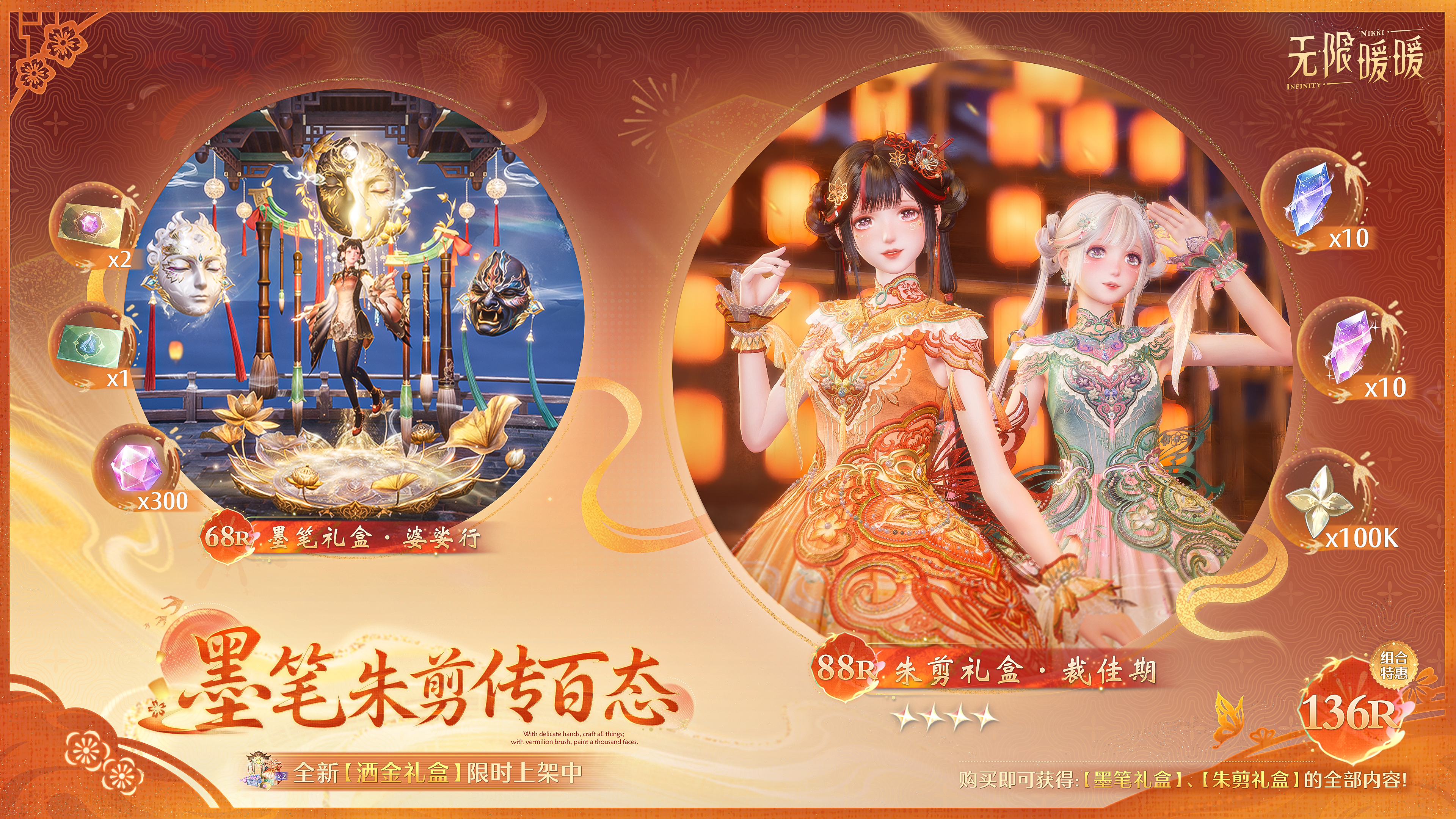 全新「朱剪礼盒」,售价88元,购买即可获得:套装「裁佳期」及「裁佳期·翠岫」、【启示水晶】*10、【共鸣水晶】*10、【噗灵】*100000。